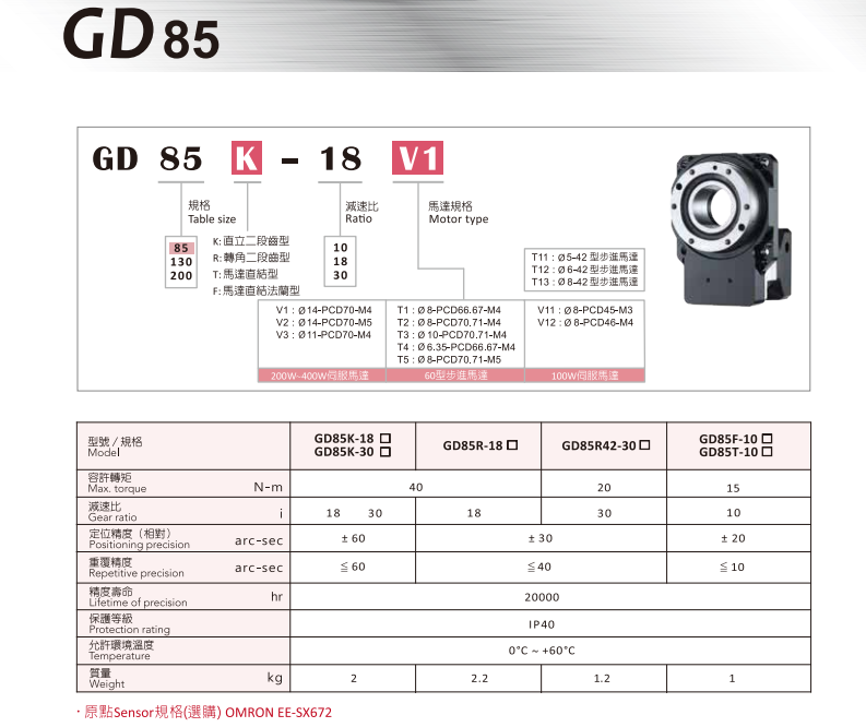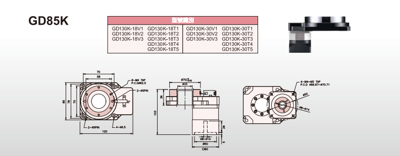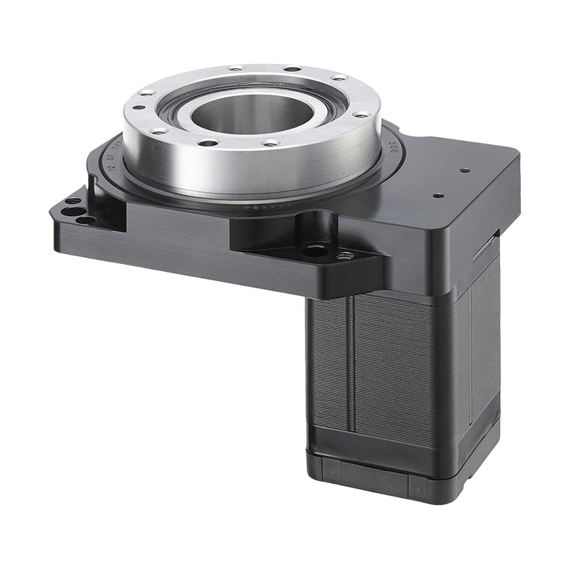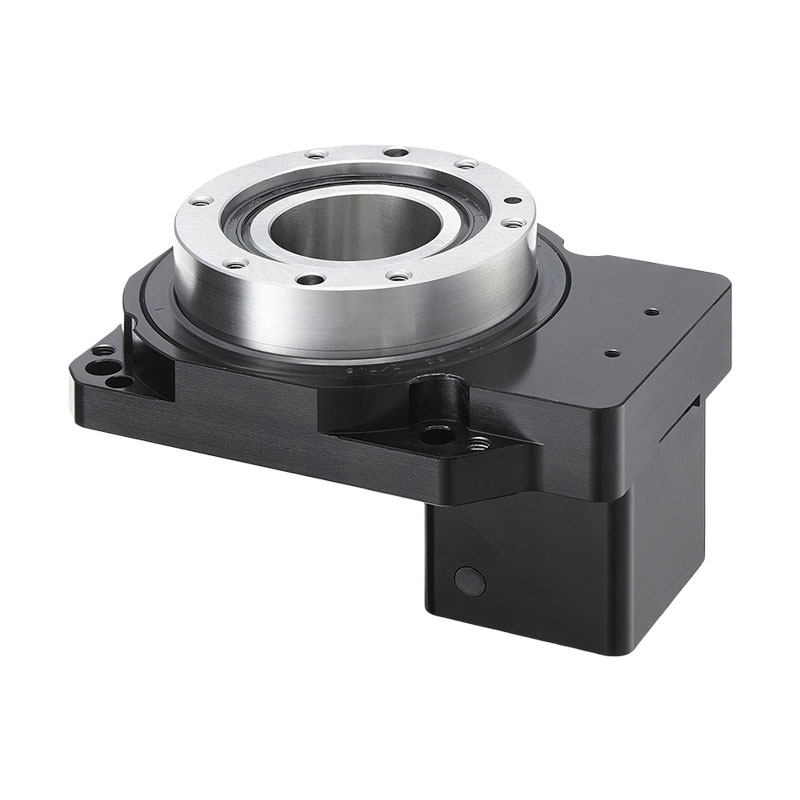 GD中空旋转平台采用单级螺旋齿轮减速方式来增大输出扭矩,齿轮精度等级JIS2级以上,加之灵活的调隙机构,通过改变两齿轮中心距的方式来控制侧隙,使得中空旋转平台的空回极小,重复定位精度在1 5弧秒以下。