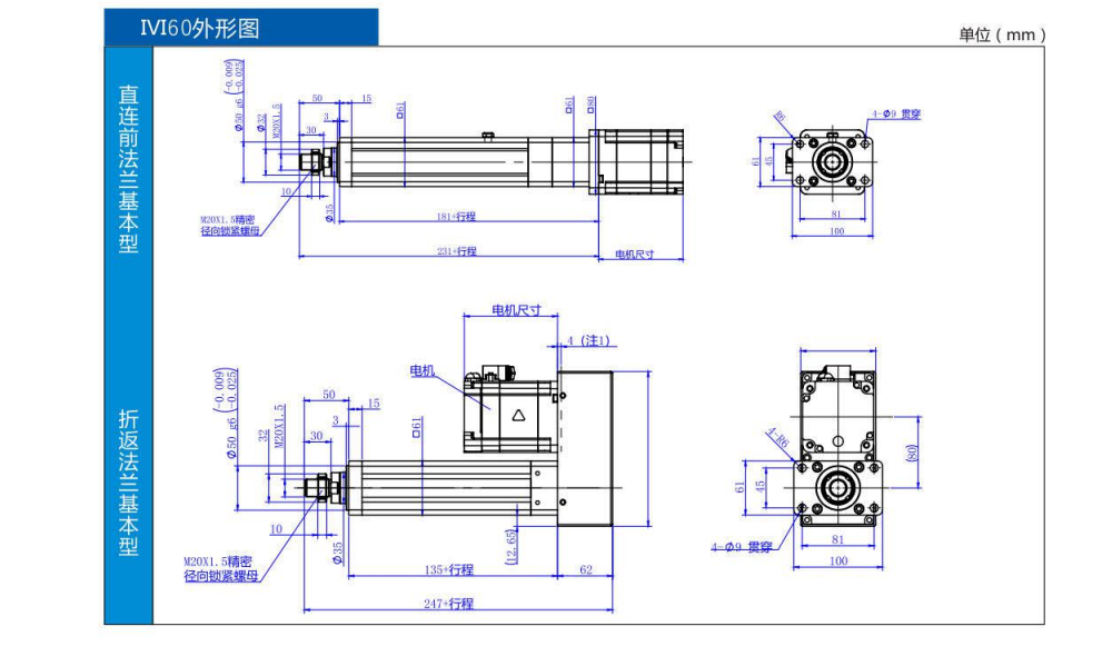 3.精确控制--配置编码器, 压力传感器,位移传感器,实现闭环精确定位;驱动系统--直流电机12/24V,单项交流电机,三相交流电机,伺服电机等,无需气源/液压源,维护更简单方便,能耗低;