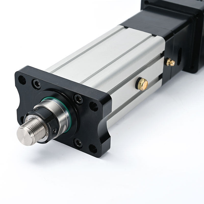 直线式电动缸本系列电动缸集成了交流伺服电机、伺服驱动器、高精度滚珠丝杆、模块化设计等技术,整个电动缸具有结构紧凑、惯量小、响应快、 低噪音和长寿命等特点。伺服电机与电动缸的传动丝杆直接相连接,使伺服电机的编码器直接反馈电缸移动活塞的位移量,减少了中间环节的惯量和间隙,提高了控制性和控制精度。伺服电机与电动缸整体相连,安装容易、设定简单、使