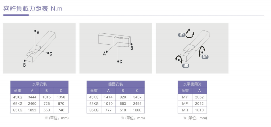 3、加减速度会使搬运质量产生惯性负荷,加减速度越大可搬运质量会越小;而且过大的加减速度会产生较大的重势力,设计时需纳入考量规范。