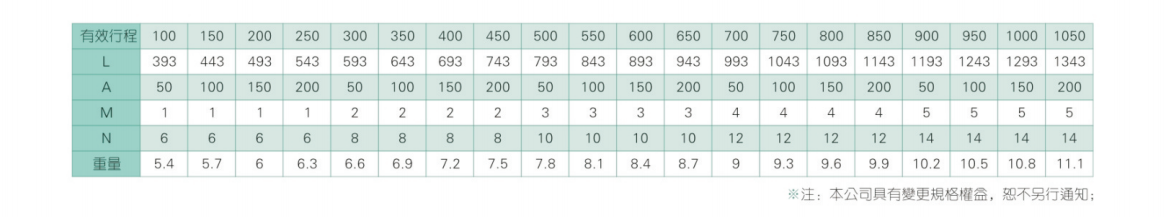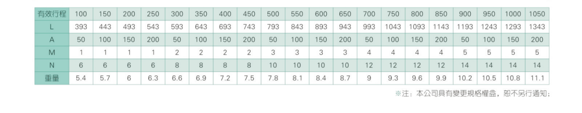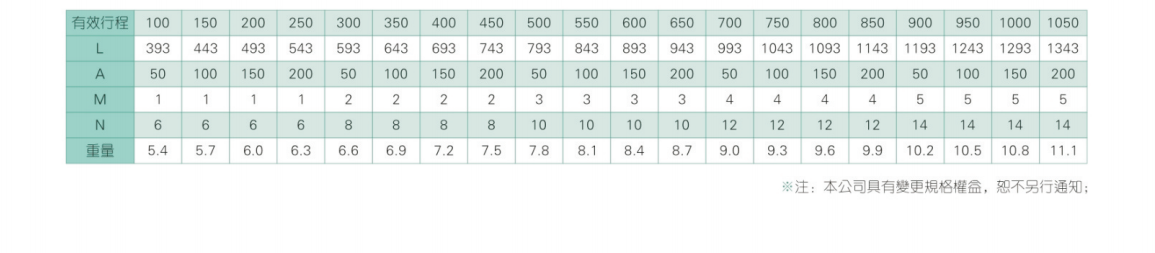 2、螺杆转速超过临界转速时可能发生共振,临界转速和螺杆长度有关,故滚珠螺杆的临界转速也间接决定了滑台模组的有效行程和总长度,有效行程和常用螺杆规格转速的关系如下列表格。
