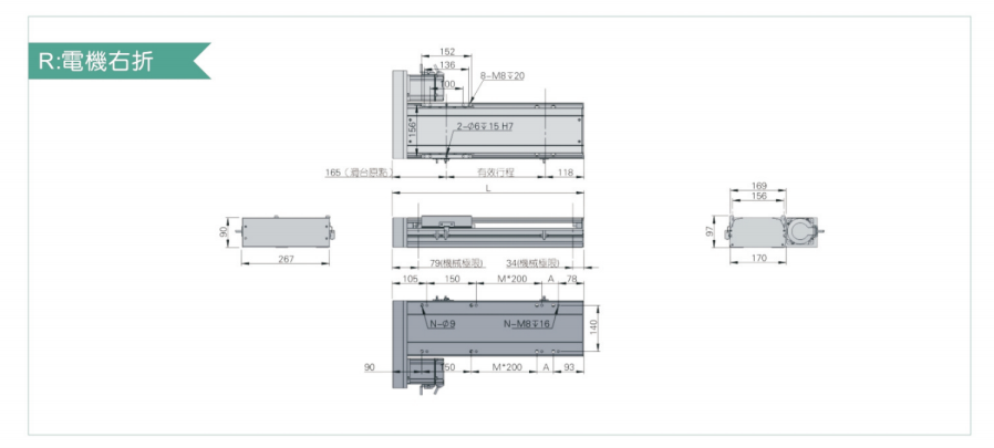 B驱动方式可依照使用需要选择滚珠螺杆驱动或时规皮带驱动。