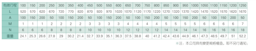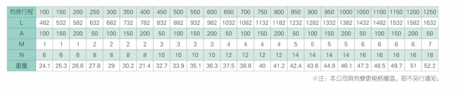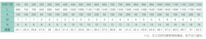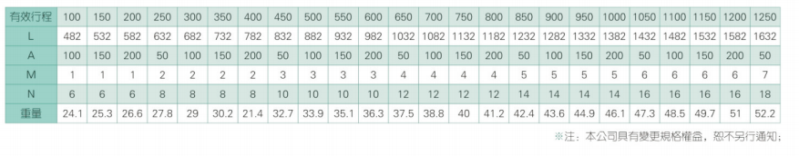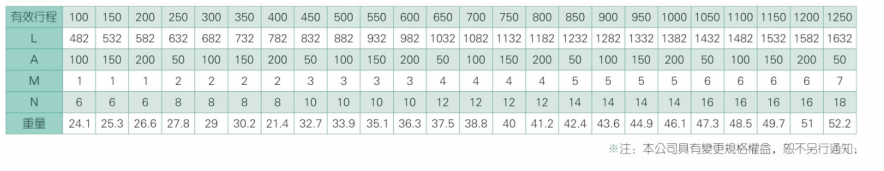 2、螺杆转速超过临界转速时可能发生共振,临界转速和螺杆长度有关,故滚珠螺杆的临界转速也间接决定了滑台模组的有效行程和总长度,有效行程和常用螺杆规格转速的关系如下列表格。