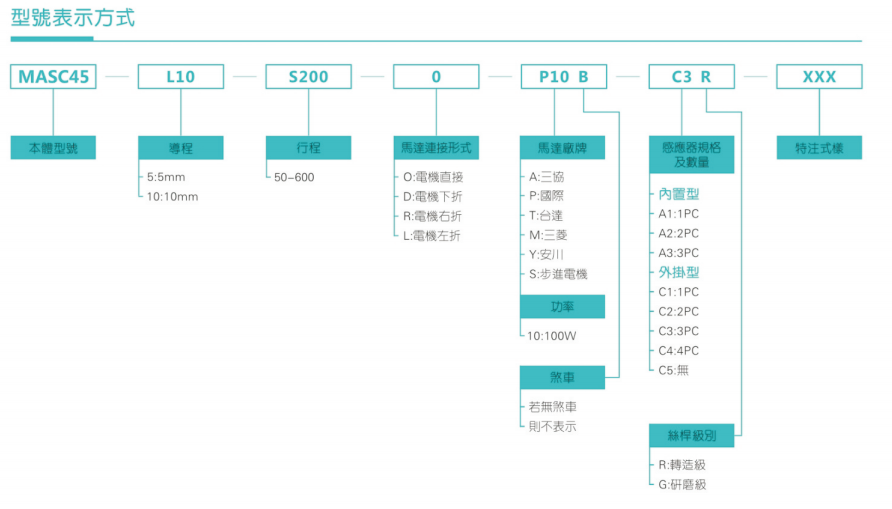 B驱动方式可依照使用需要选择滚珠螺杆驱动或时规皮带驱动。