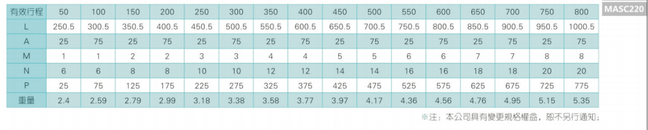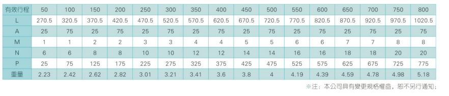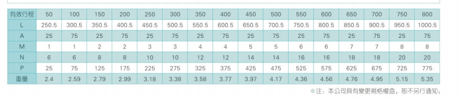 2、螺杆转速超过临界转速时可能发生共振,临界转速和螺杆长度有关,故滚珠螺杆的临界转速也间接决定了滑台模组的有效行程和总长度,有效行程和常用螺杆规格转速的关系如下列表格。