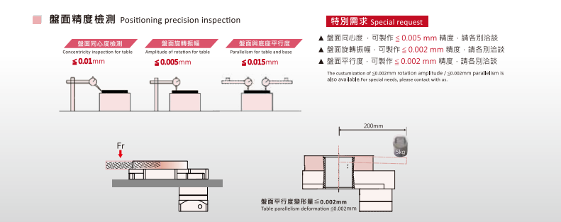 本旋转盘考量到使用时侧向力之问题。因此,采用“园锥滚珠轴承”(Taper Roller 以承受盘面侧向力臂负载。